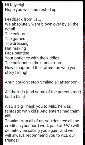 Our colourful entertainer will run your party and keep the children engaged throughout.